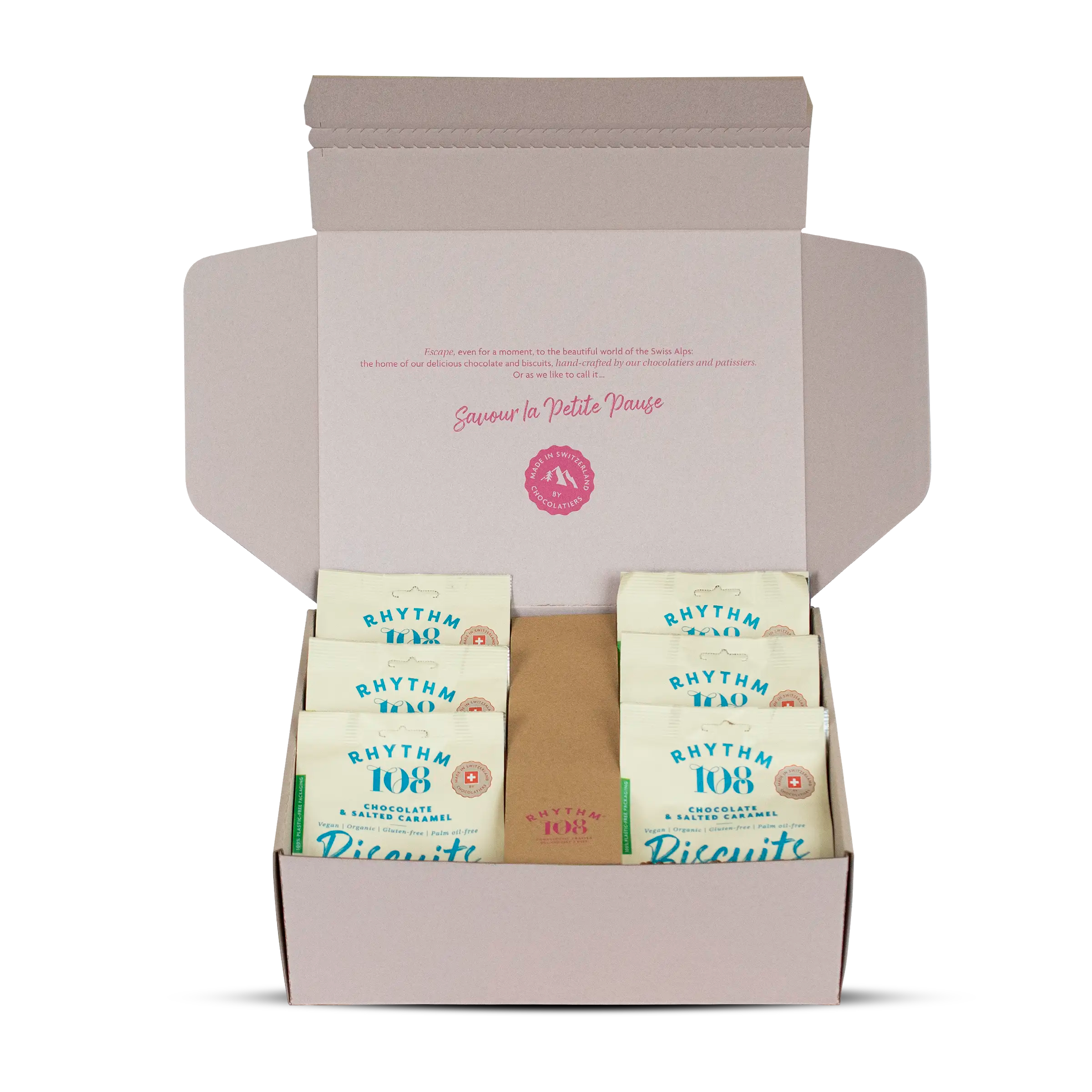Introducing our most indulgent biscuit yet. An indulgent buttery sable filled with golden salted caramel, topped with our signature Swiss chocolate chips.